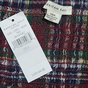 NWT American Eagle Womens Plaid Smocked Puff Sleeve Crop Top Size L