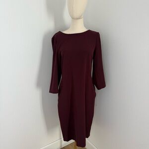 MM Lafleur Rich Burgundy 3/4 Sleeve Midi Dress - Size 10