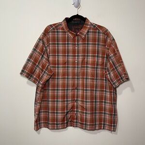 Kuhl Men's orange grey plaid checkered outdoor hiking button down shirt in XXL