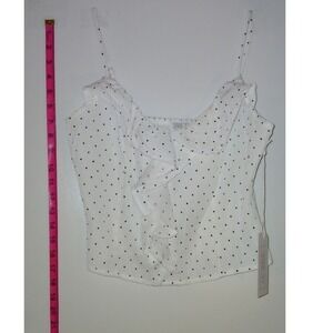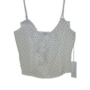 Sienna Sky Womens White Polka Dot Ruffle Camisole Top Smocked Back Medium NWT