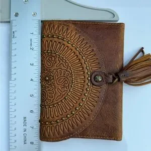 Large wallet or small clutch handbag with leather tassel. In great used condition. No stains or flaws.