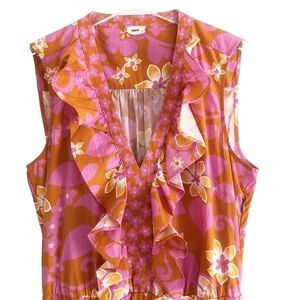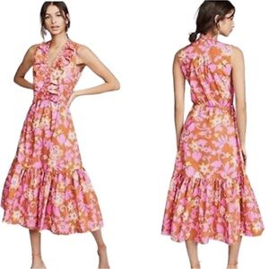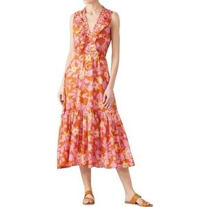 Warm Sierra Sleeveless Orange Pink Floral Cotton Tiered Midi Dress 2