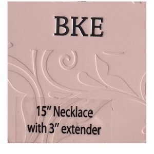 BKE: 15” chain with 3” extension. Gold tone necklace with carabiner type pendant and five charms.