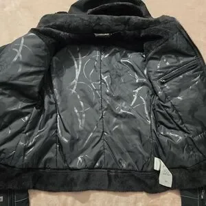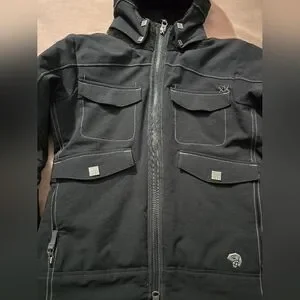 Mountain Hardwear Soft Shell Utility Moto Hooded Bomber jacket Coat black cozy S