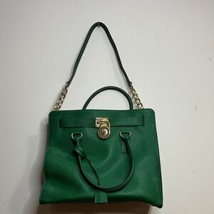 Chic and stylish green handbag perfect for any occasion. Features a sleek design with gold accents. Ideal for adding a pop of color to your outfit.