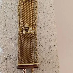 This vintage gold bracelet adds a touch of sophistication to any outfit. Perfect for any occasion.