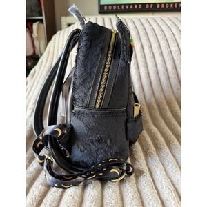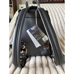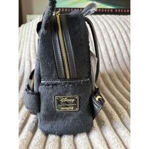 Loungefly Disney Hocus Pocus Binx Plush Mini Backpack captures the iconic black cat in a charming, fuzzy design. This bewitching accessory features Binx wearing a witch hat with pom-pom details while holding a glowing "Hocus Pocus" cauldron. The bag is crafted with soft plush faux fur and vegan leather, accented by gold-tone hardware and adjustable straps printed with stars and moons. A special glow-in-the-dark feature on the cauldron and eyes adds a magical touch, and the back showcases a printed graphic of Binx. Perfect for Halloween or any fan of the classic film, this mini backpack includes a main compartment, side pockets, and a front zippered pocket for all your essentials.