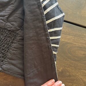 Stylish black top with striking white embroidery. Perfect for chic outfits. Worn once for a costume.