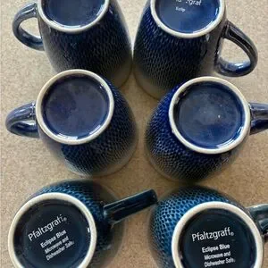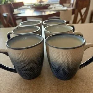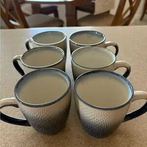 Elegant mugs with a textured design. Ideal for hot beverages.