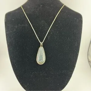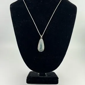 Spiderweb Kingman Turquoise Sterling Silver Pendant 22” Necklace 925