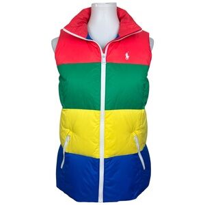 Polo Golf Ralph Lauren Duck Down Colorblock Striped Full Zip Puffer Vest Jacket Womens Small