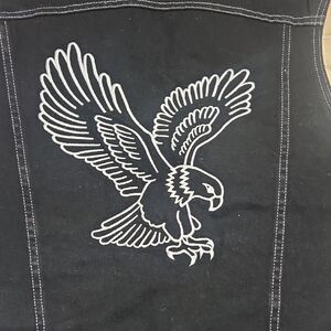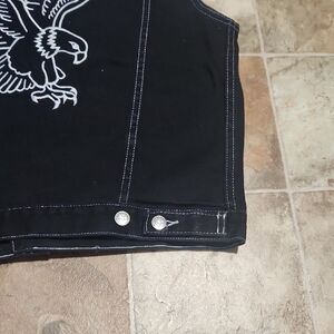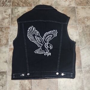 Sleek black vest with striking eagle embroidery on the back. Features Harley-Davidson patch on the front.