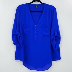 Torrid Harper Vibrant Blue Zipper V-Neck Roll-Tab Sleeve Popover Blouse Top 1X