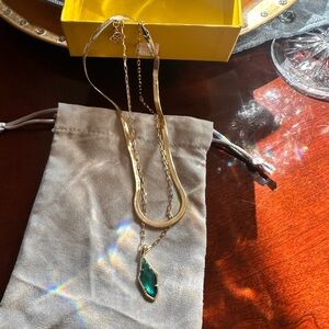 Kendra Scott Evelyn Gold Multi Strand Necklace in Dark Green Mother-of-Pearl, NWT
