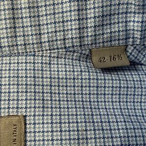 NWOT Canali Men’s Luxury Italian Shirt Sky Blue Checkered Dress Shirt, L
