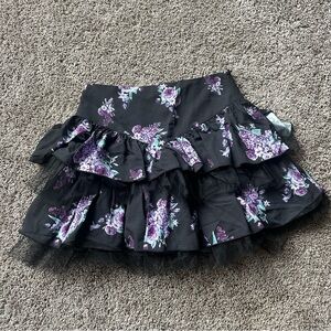 Dolls Kill Black and Purple Floral Mini Skirt