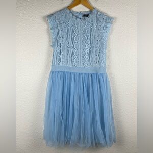 Simplee light blue sleeveless dress sheer lace bodice layered tulle skirt S/M