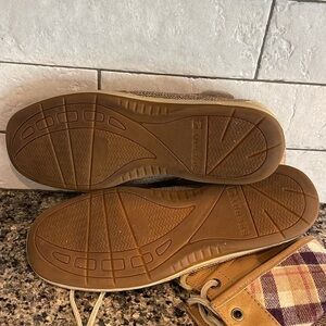 Step out in style with Sperry's tan ankle boots featuring a chic plaid accent. Perfect for casual outings, these boots offer both comfort and fashion.