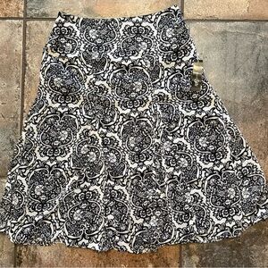 East 5th black and white paisley A-Line skirt with flutter hems. Perfect for versatile styling. NWT. Smoke free, pet free location.