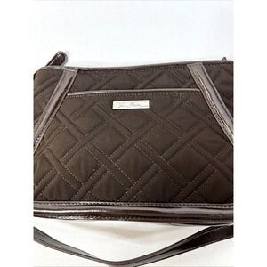 Vera Bradley Brown Trimmed Trapeze Quilted Fabric Faux Leather Crossbody Bag