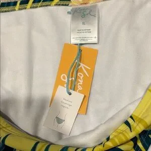 Kona Sol Yellow Leaf Print Bikini Bottom