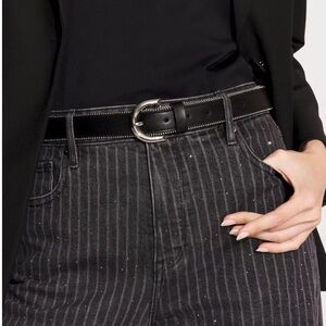 WHBM Belt Features Black Vegan Faux Leather ➖ Silvertone Ball Chain Detail Along Edges ➖ Silvertone Buckle Closure ➖ Approximately 1” Wide … 42” Length ➖ Fits Waists 33” - 39”