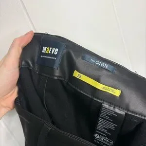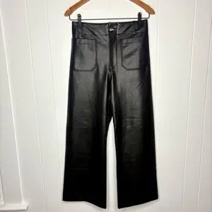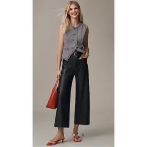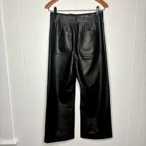 Maeve Anthropologie Black Colette Faux Leather Crop High-Rise Wide Leg Pants 29