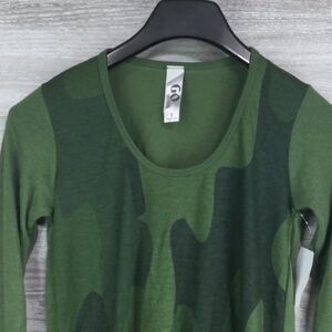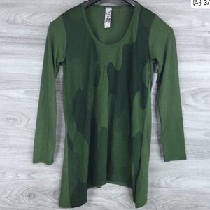 Go Couture Olive Camo High-Low Long Sleeve Handkerchief Tunic Sweater Top Size S