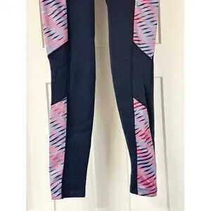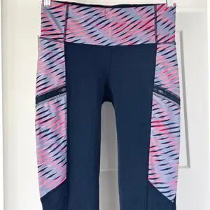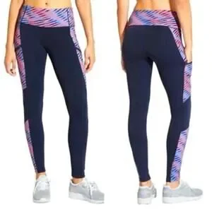 Athleta Polartech Fleece Leggings Navy/Pink Size M *EUC