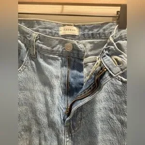 Trending light wash with raw hem for that effortless vintage Y2K aesthetic.