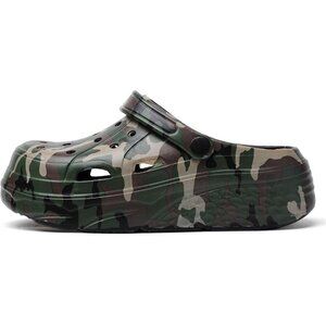 Features: These stylish clogs feature a unique camo print that adds a bold touch to any casual look. Made from lightweight EVA foam, they’re super comfy for all-day wear. The breathability holes keep your feet cool and dry, even in warm weather. The pivoting heel strap allows you to wear them slip-on or as sandals for extra stability. They're waterproof, making clean-up a breeze, and the durable soles provide grip on wet or uneven surfaces.