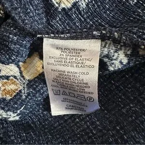 Loft Outlet Navy Blue Smocked Waistband Yellow Floral Print Blouse Size L. Smocked cuffs, wider neckline. Approx 21” pit to pit and 22” in length. Poly/spandex blend.