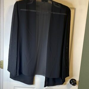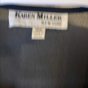 This Karen Millen blazer in a deep black hue offers a sleek and professional look, perfect for formal occasions. Crafted with a clean silhouette and long sleeves, it embodies timeless elegance. The open front design adds a modern touch to this classic piece.