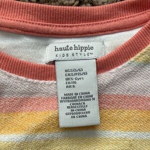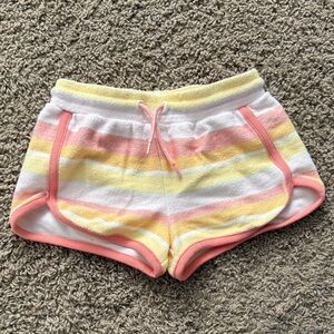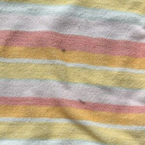 Charming kids set with pink, yellow, and white stripes. Soft and comfortable! 2 marker stains on top as shown in pictures