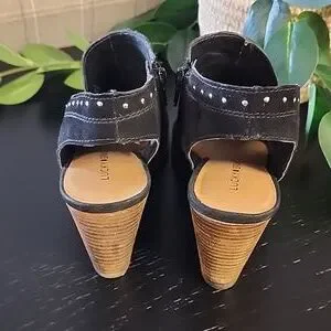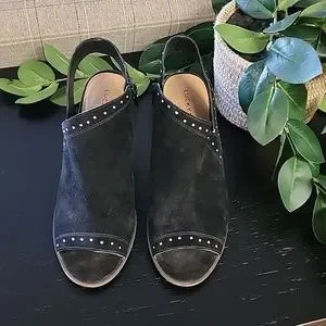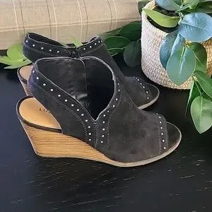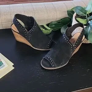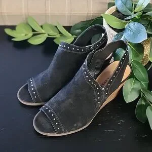 LUCKY BRAND Ulyssas Suede Slingback Wedge Sandals 39 8.5 Studs Vegan Leather