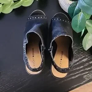 Gorgeous Lucky Brand open toe stacked wedge slip on sandals from Lucky Brand in a size 39, US size 8.5.