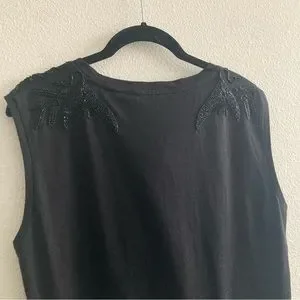 Loyd/Ford Black Beaded Embroidered Mesh Sleeveless Top Minimal Artsy 100% Cotton