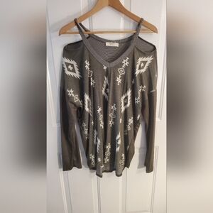 NWT Olive Southwest Patterned Cold Shoulder Long Sleeve Top