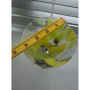 🟡 Hand Made In Romania Art Glass Martini Glass 7.5" Yellow Blue Swirl Stem