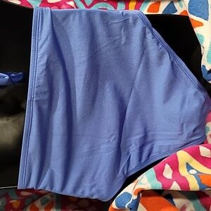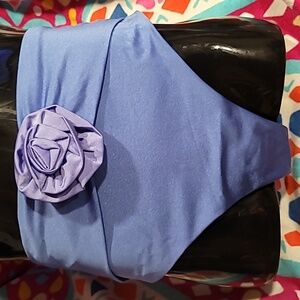Make a statement with this chic blue bikini adorned with purple floral details. Ideal for a stylish beach day.