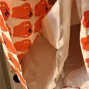Vibrant orange pepper print skirt, perfect for adding a pop of color to your wardrobe. Ideal for casual outings or a fun day out.