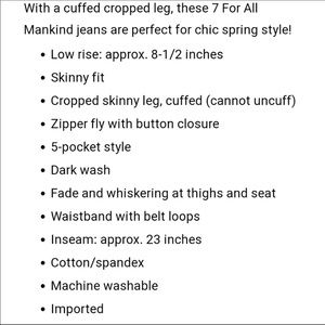 7 For All Mankind The Skinny Crop and Roll Jeans Size 26
