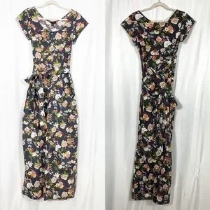 Anthropologie X Current Air Clea Wide Leg Belted Button Front Jumpsuit Floral