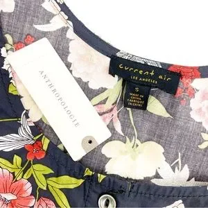 NWT Anthropologie X Current Air Clea Wide Leg Belted Button Front Jumpsuit Floral Boho Bohemian.
