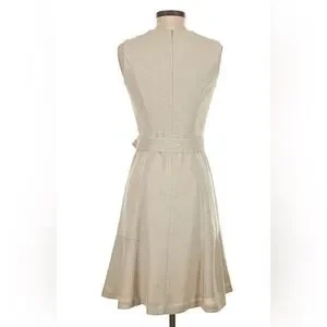 Chic beige midi dress with a stylish belt. Sleeveless design for versatile wear. Perfect for any occasion.