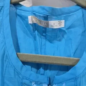 New without tag Athleta swim cover up. Very light weight cotton. Zipper front with embroidered detail. Tie at waist, side slits and hidden pocket inside near bottom.