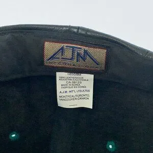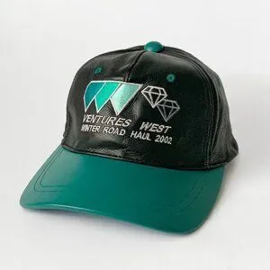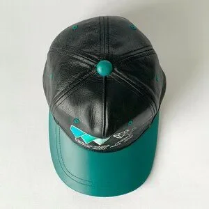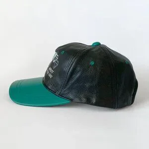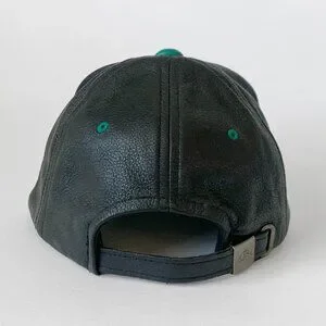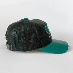 Vintage Leather Baseball Hat Cap Ventures West Diamond Black Green Streetwear