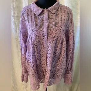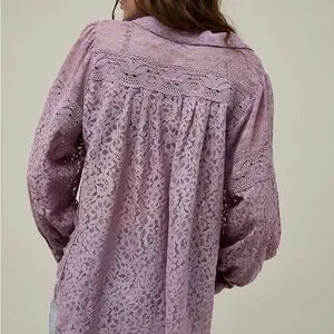 Chic lilac lace blouse. Delicate floral pattern. Perfect for layering. No size tags. Measurements in photos! Shirt is like new!