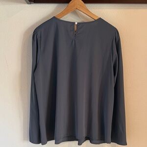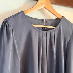 Temu Women's Pleated Neckline Long Sleeved Blouse, Slate Grey, Size L