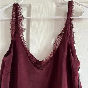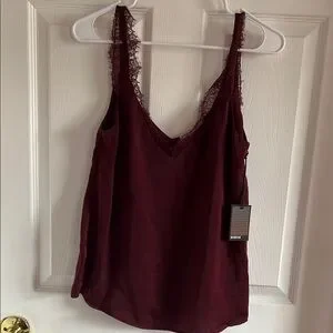 Elegant burgundy top with delicate lace trim. Perfect for a chic and stylish look. In colour “wine”